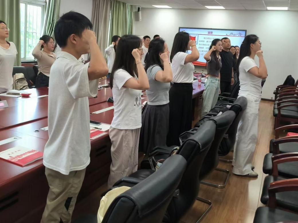 朱子琳同志带领现场同志重温入党誓词,激励全体党员牢记初心使命,以更加坚定的政治自觉践行“对党忠诚、积极工作”的庄严承诺,将誓言转化为落实中央八项规定精神、推进作风建设的实际行动。