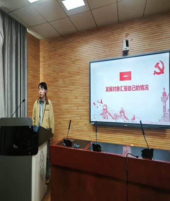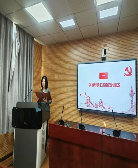 随后,文秋霖、孙义康、何丽华、徐紫凌4名发展对象汇报自己对党的认识、入党动机、本人履历等需要向党组织说明的问题。再由各自的入党介绍人介绍相应发展对象在发展期间的现实表现情况并对是否同意其接收为预备党员发表意见。