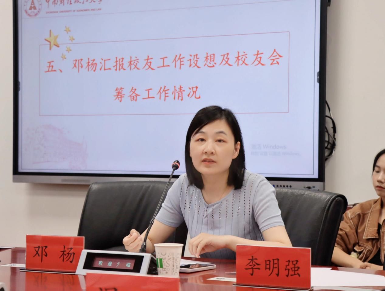 邓杨汇报了校友工作设想及校友会筹备工作情况,她表示将广泛联络广大校友,建立校友信息库,推动构建“校友—学院—顾问”发展共同体,构建常态化校友联系服务合作机制。