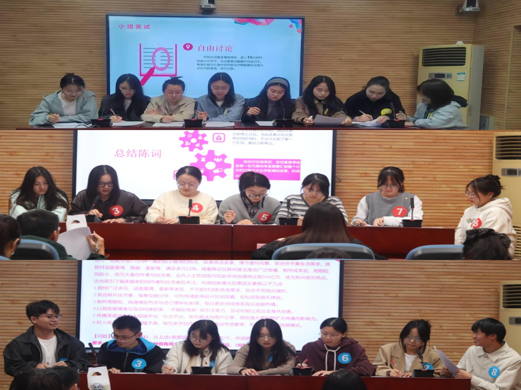 活动开始,参赛选手依据规则分为三组,依次完成个人陈述、自由讨论及现场总结等流程。在面试环节完成后,评委组同步开展简历评比工作,以求职简历的专业性、完整性等维度作考量,评选出“最佳简历制作奖”。