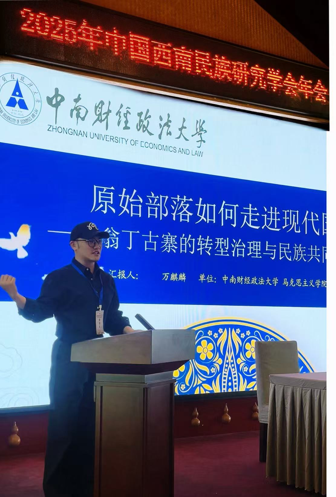 (通讯员 万麒麟)11月22日,由中国西南民族研究学会与中国社会科学院民族学与人类学研究所联合主办,云南省临沧市沧源佤族自治县委承办,滇西科技师范学院、云南民族大学云南省民族研究所(民族学与历史学学院)与中国西南民族研究学会茶文化专委会联合协办的中国西南边疆地区高质量发展与生动实践习近平总书记“两山”理论20年及给云南“三个定位”10年成就学术研讨会暨2025年中国西南民族研究学会年会在云南省临沧市沧源县举行。我院2025级硕士研究生万麒麟的论文《原始部落如何走进现代国家——翁丁古寨的治理转型与中华民族共同体建设》成功入选此次会议,万麒麟受邀参加并于会上进行交流发言。