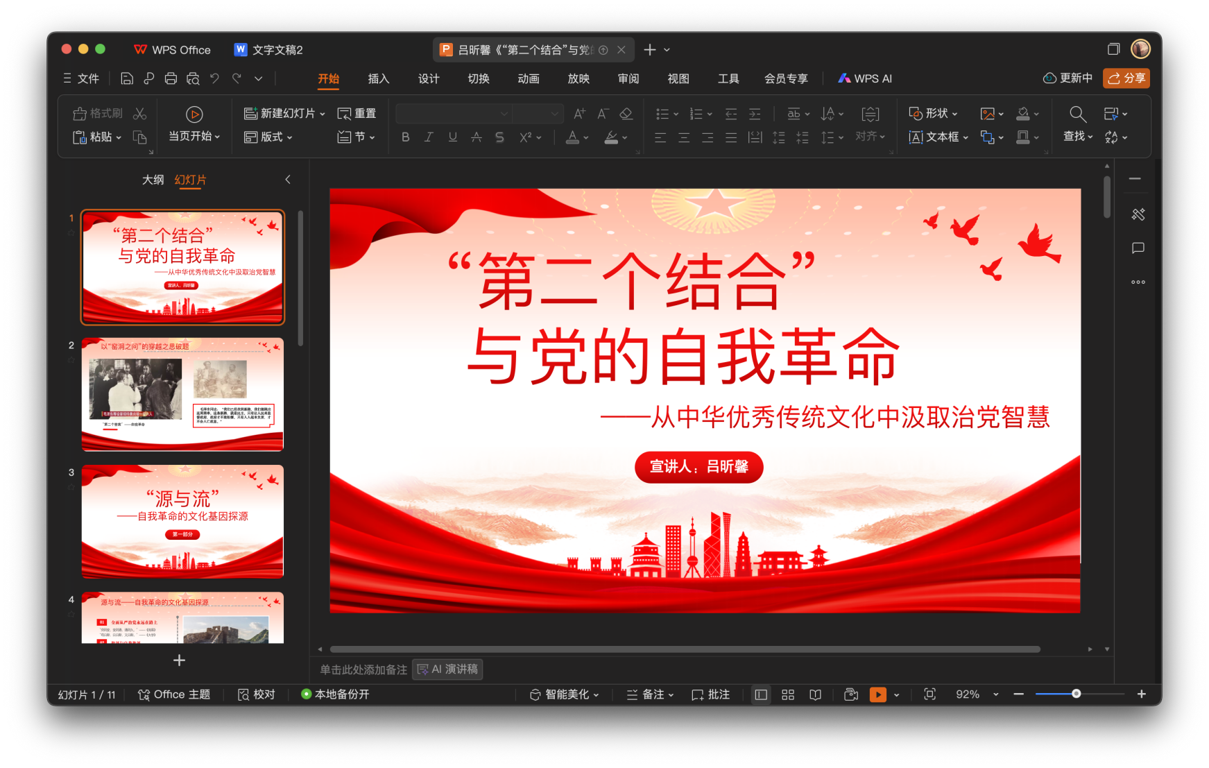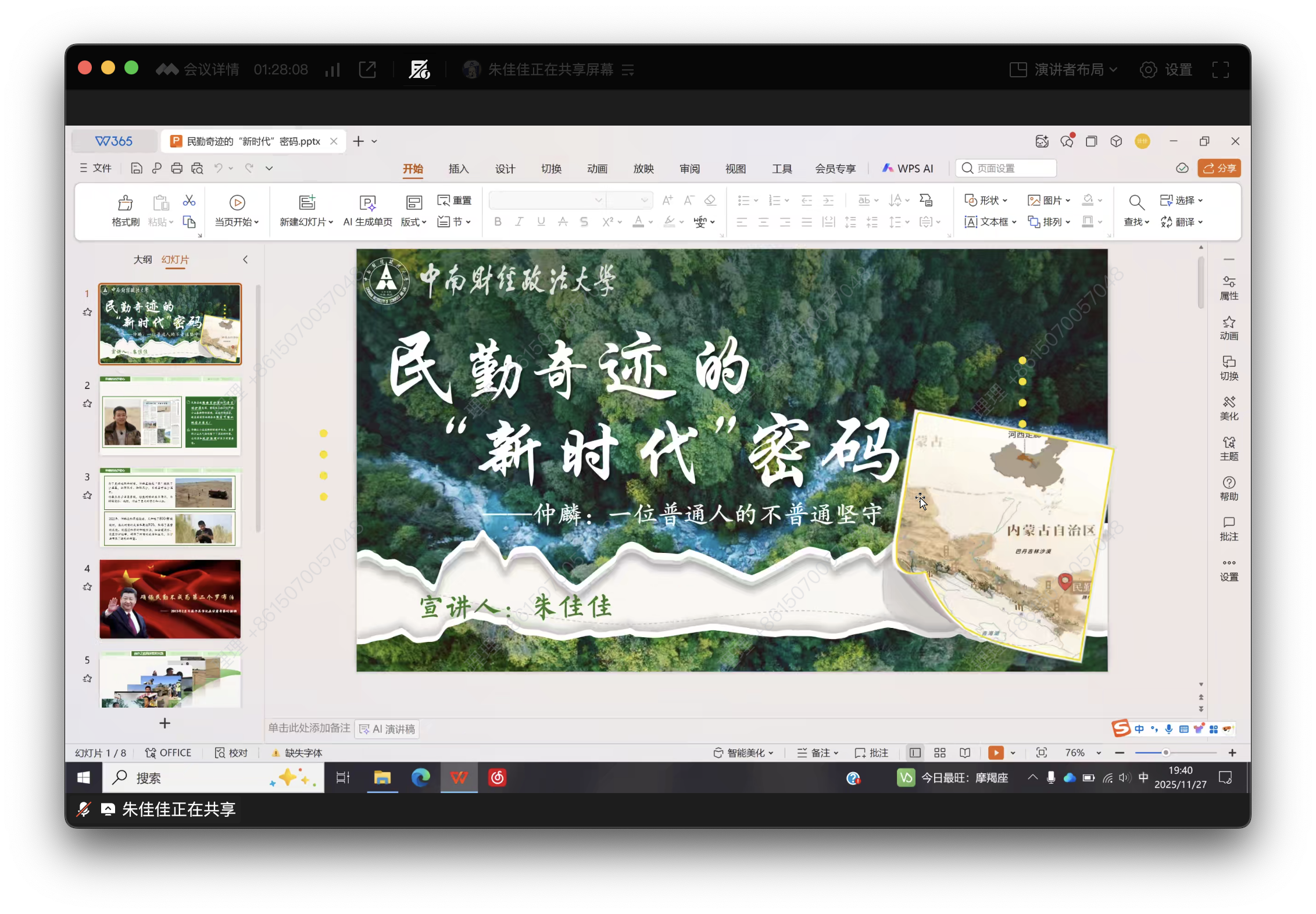 在示范宣讲结束后,9位宣讲团成员依次共享屏幕,完整呈现宣讲框架、核心内容与案例细节: