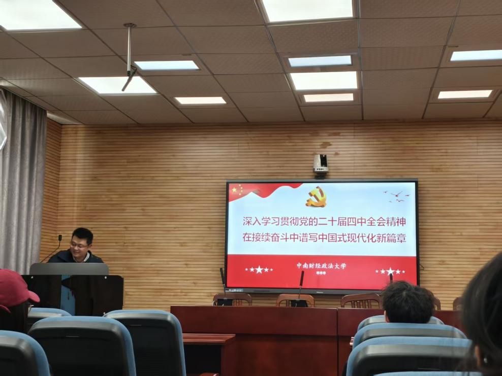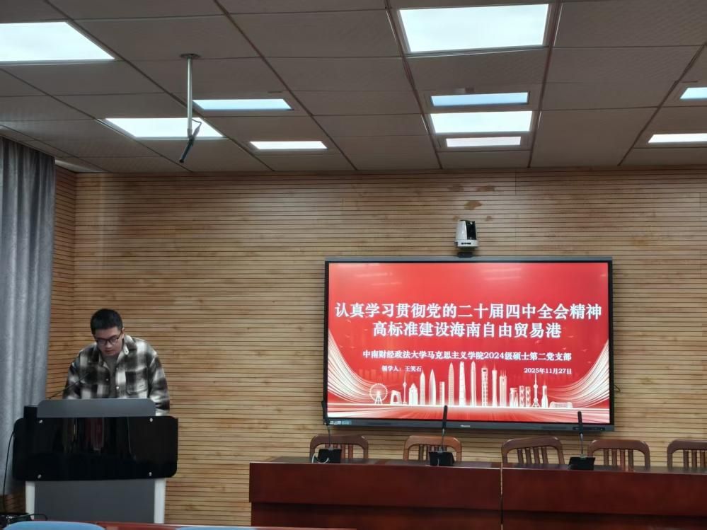 (通讯员 张欣玥 胡南 摄影张欣玥)11月27日下午,马克思主义学院研究生第二党支部在文沛楼409会议室展开“深学细悟党的二十届四中全会精神,凝心聚力推动学校改革发展”11月份主题党日活动。支部书记胡南主持活动,积极分子王笑石同志领学,研究生第二党支部全体在校党员和团员参加学习。