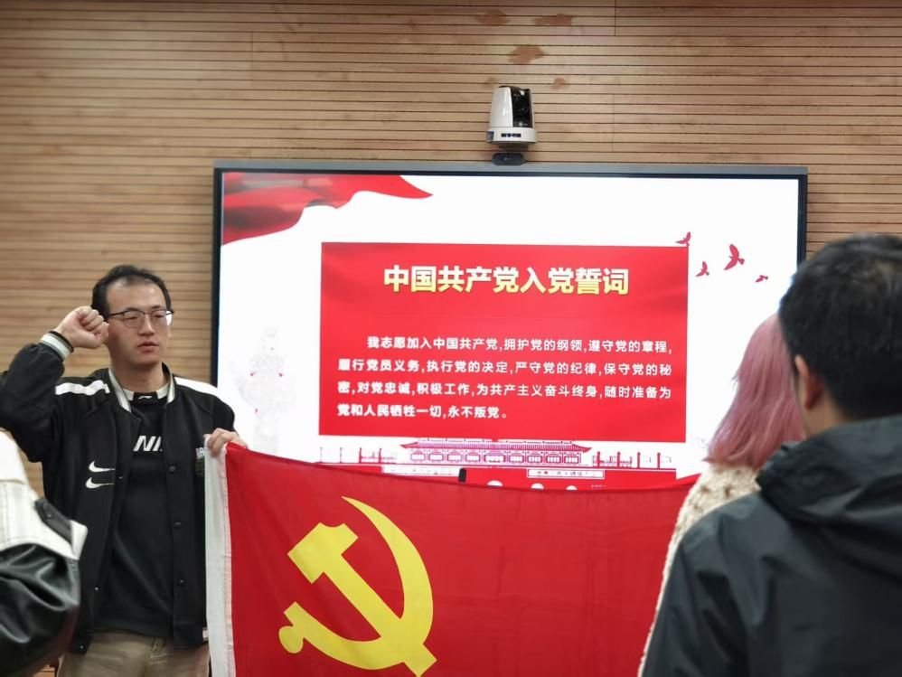 会议第二项,由杨茹媛同志带领全体党员重温入党誓词。