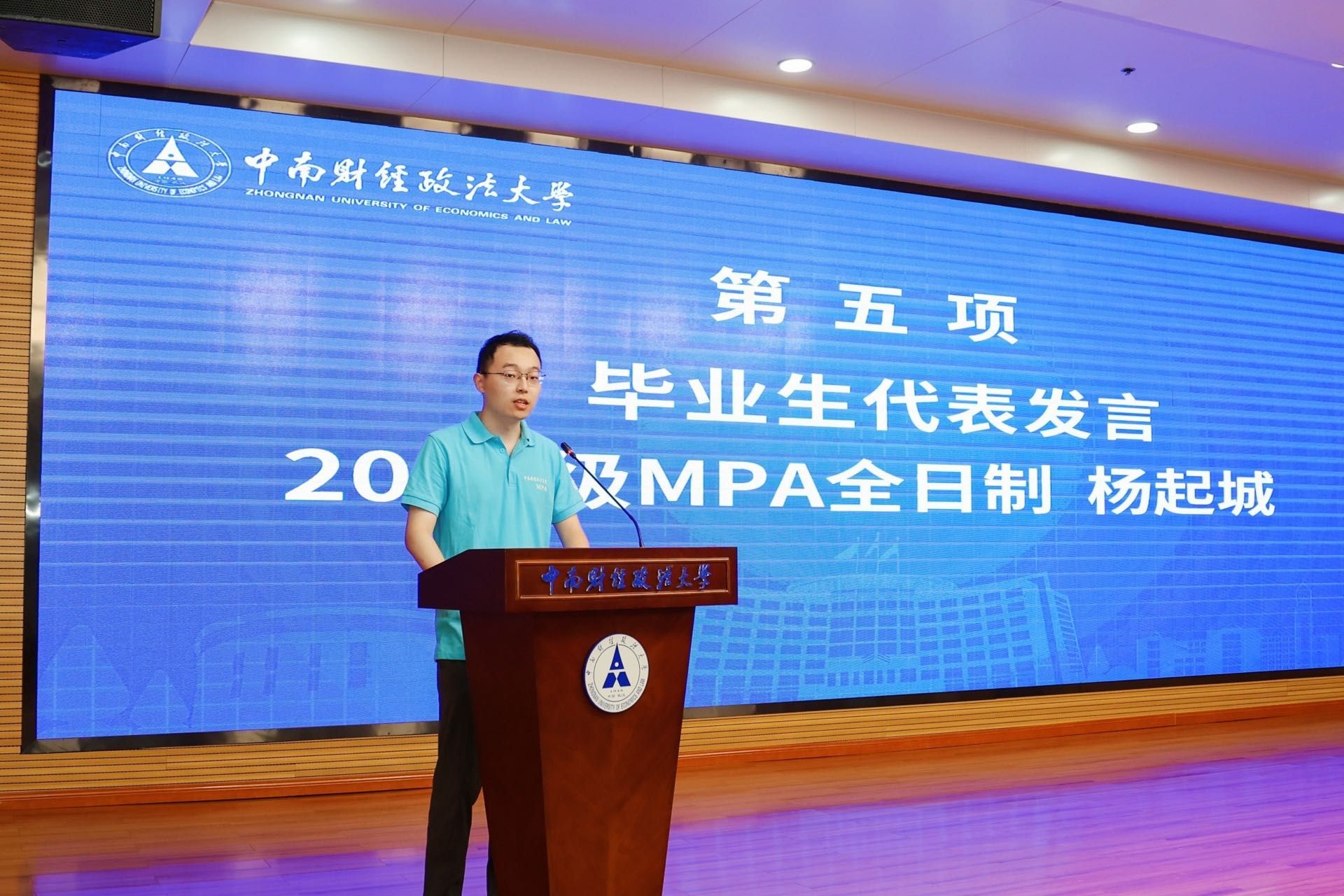 2022级非全日制MPA新生陈浩同学发言,鼓励大家态度先行、勇于拼搏,行动至上、实践探索,团结包容,止于至善。学习机会来之不易,作为新时代青年人,当勉励、当笃行。