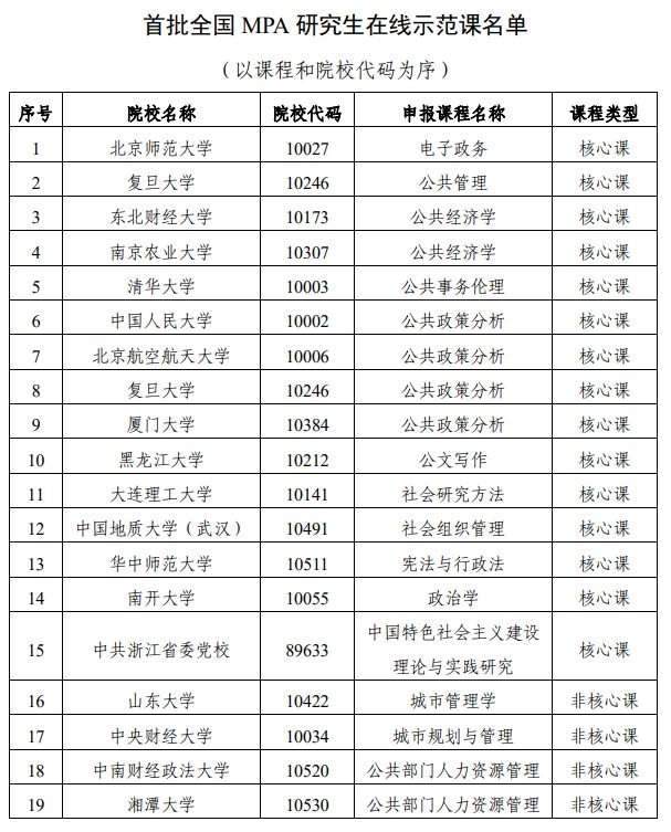 新闻网讯(通讯员 王慧敏)在线示范课程建设是国家专业学位研究生教育教学改革的重要内容。近日,在全国公共管理专业学位研究生教育指导委员会公布“首批全国MPA研究生在线示范课程”验收评审结果中,从全国55门课程建设计划名单中共评选出“在线示范课”19门,我院张广科教授团队主持的《公共部门人力资源管理》课程成功入选“首批全国MPA研究生在线示范课名单”,并在验收评审中被授予“在线示范课程”的荣誉。这标志着学院在公共管理硕士专业学位研究生教育建设上取得了新的突破。