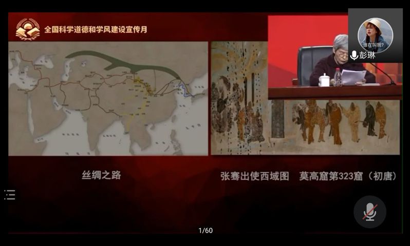 活动最后,线上和线下会场的同学们一齐观看了2020年全国科学道德和学风建设宣讲教育报告会节选片段——《守一不易,奉献敦煌》,学习科学家们矢志报国、服务人民的高尚情怀和优秀品质。