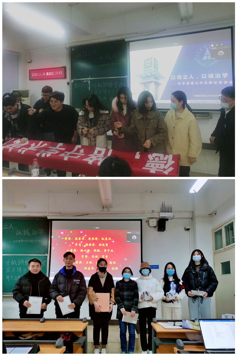 活动第三项则通过颁奖的形式,对积极参与线上“科学道德与学风建设之知识大普及”有奖竞答活动并取得优异成绩的同学进行表彰,以激励同学们学习科学道德知识,践行诚信学术精神。
