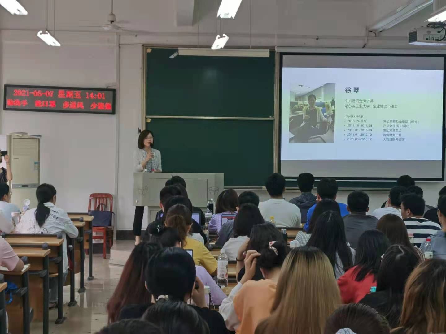 (通讯员:苗佳宁)2021年5月7日下午14时,中兴通讯集团预算及业绩部部长徐琴女士在文添楼303教室为学院(中心)2021级审计专硕研究生讲授《中兴通讯的全面预算管理实践》,该课程由专硕导师组组长季华副教授主持,2020级审计专硕等研究生聆听了相关内容。