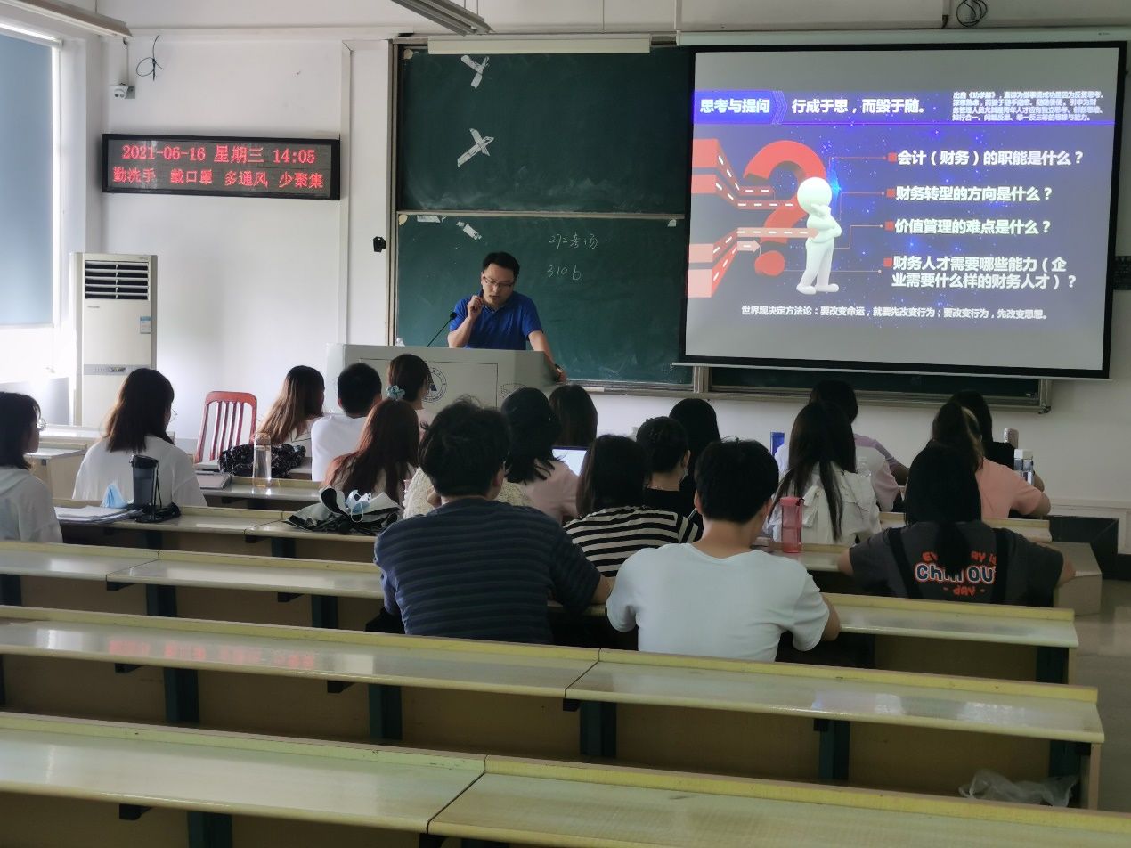 2021年6月16日和19日,湖北电信财务共享中心资深专家、高级工程师陈刚分别以《从财务共享到智慧核算建设研究与实践》《数聚智慧 洞见未来——“智慧财务共享”转型思考》为题为我院审计专硕学生讲授《智能财务共享理论与实践》课程的部分内容,该课程由我院审计系史永副教授主持。