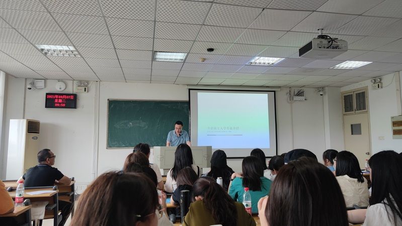 院研办主任、研究生辅导员向传殿老师从人身安全、财产安全、消防安全、国家安全、网络安全、交通安全、防诈骗、疫情防控八个方面做安全教育。随后,研究生辅导员杭慧喆老师介绍了学校、学院的日常管理与奖助体系、党员发展流程等内容,引导同学们做好研究生生涯规划。
