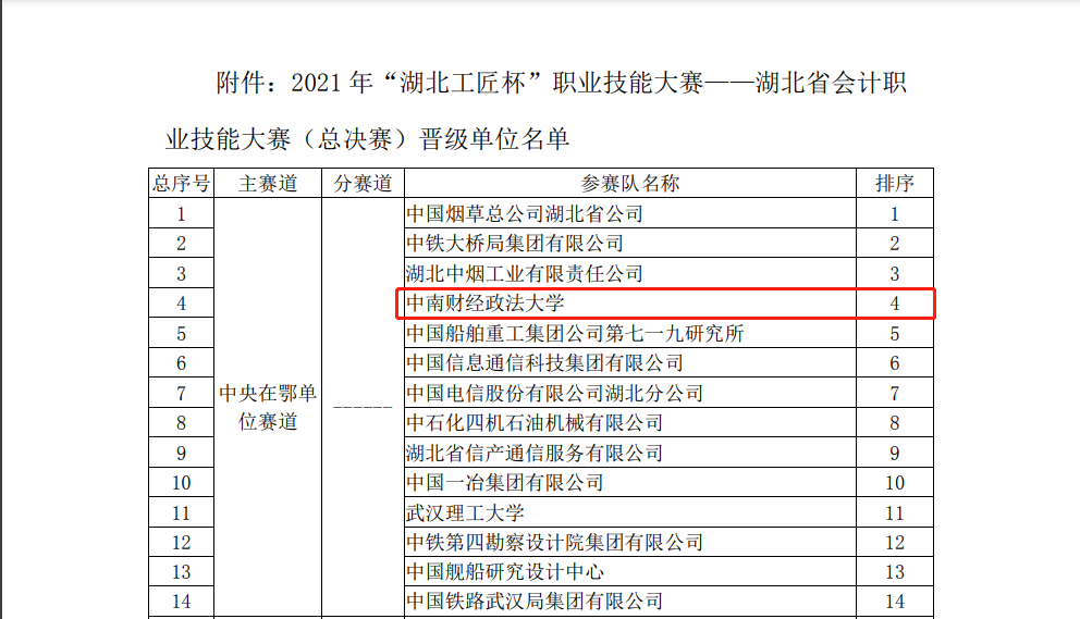 近日,在2021年“湖北工匠杯”会计职业技能大赛选拔赛中,由我院(中心)本科生和研究生组建的米兰电竞·(中国区)代表队从54家“中央在鄂赛道”参赛单位中脱颖而出,勇夺第四名的好成绩,成功获得总决赛的参赛资格。