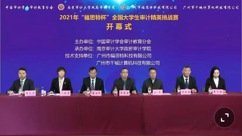 比赛前,由中国审计学会会长孙宝厚、审计署审计干部教育学院副院长刘军、江苏省教育厅高教处处长邵进、广州市福思特科技有限公司董事长闫晓霞、南京审计大学党委副书记、副校长王会金等嘉宾致辞。