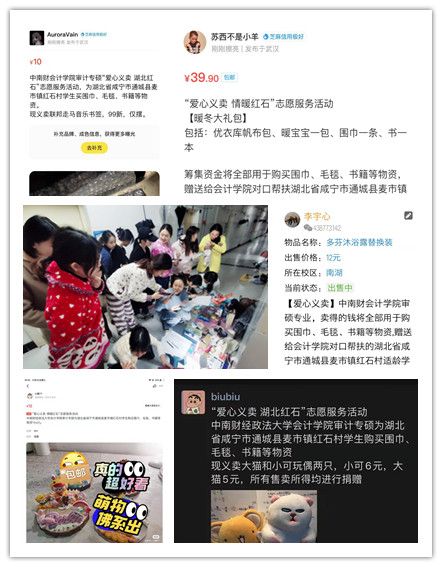 本次活动吸引了237位审计、会计硕士参与,共计筹得善款3269.7元。活动共分两个阶段开展,首先,同学们通过闲鱼、朋友圈等社交平台或二手转卖平台,售卖闲置物品,而后,将义卖所得的资金和自愿捐赠的善款归总,购买了10套“保温杯+羊毛围巾”礼盒,以及30套独立装羊毛围巾,全部捐赠给我校结对帮扶地区——通城县麦市镇红石村的适龄学生。