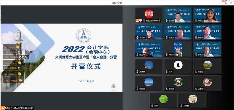 6月25日上午8点30分,2022年“会人会语”文澜优秀大学生夏令营开营仪式在线上举行。本次夏令营吸引了来自全国各知名高校近千人报名,经资格审查、优中选优,会计学院(会硕中心)最终遴选了520名优秀学子入营,无论是申请人数,还是入营人数均创历史之最!
