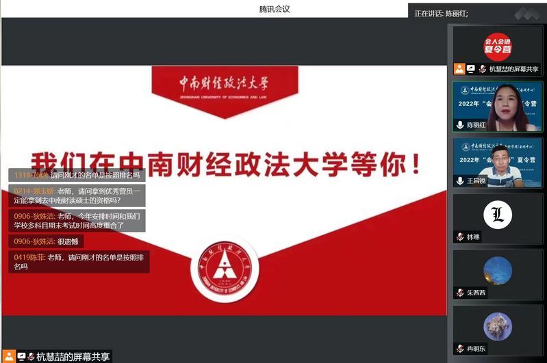 最后,学院院长张敦力教授宣布闭营,并与王昌锐副院长、陈丽红副院长一起解答了营员们关于名额分配、专业调剂、直博政策等方面的疑问,为2022年“会人会语”文澜优秀大学生夏令营画上圆满句号!(文/杭慧喆 图/林琳 古文卿)