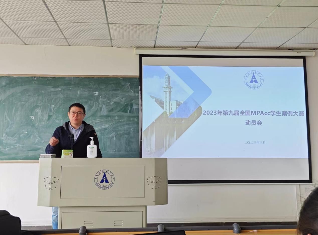 为进一步提升参赛队伍发现、分析、解决企业实际问题的能力,以饱满的热情和高昂的斗志奋力前行,力争在2023年第九届中国MPAcc学生案例大赛取得佳绩,2023年3月30日下午14:30分,会计学院(会硕中心)在文添楼501举行“2023年第九届中国MPAcc学生案例大赛动员会”。会硕中心主任兼副院长王昌锐教授,专硕导师组组长宋梦丽副教授、王嘉鑫副教授,会硕中心办公室杭慧喆老师、林琳老师,2022级会计专业硕士全体研究生同学以及参赛的本科生同学参加了此次动员会。