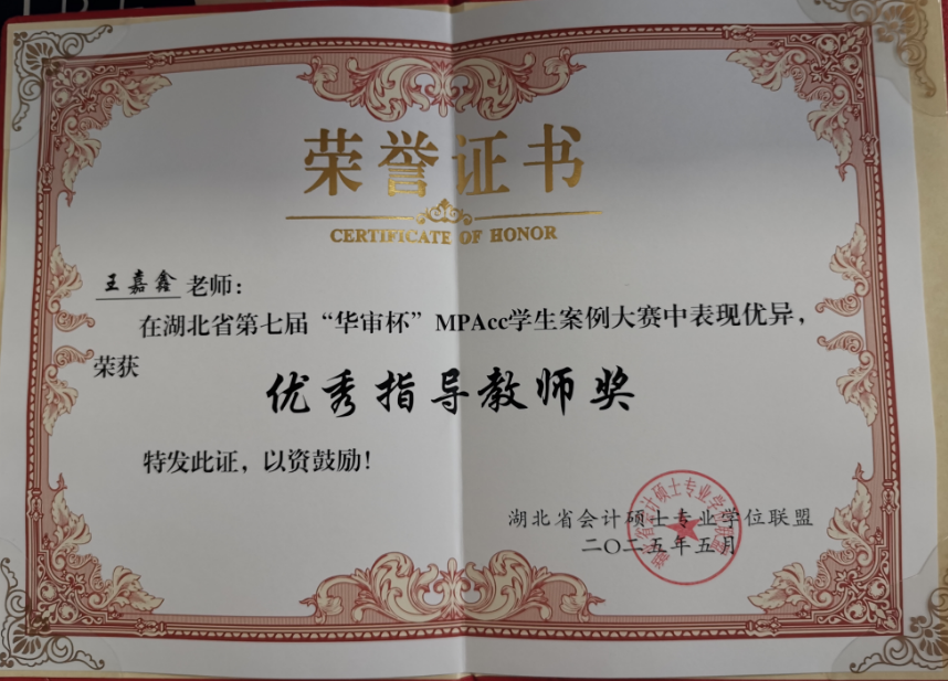 (通讯员:张昭妍、徐一姍)2025年5月10日-11日,2025年湖北省第七届“华审杯”MPAcc学生案例大赛在三峡大学举行,我院两支参赛队伍——“第一梯队”和“胆double天队”获大赛三等奖、王嘉鑫老师获优秀指导老师、学校获优秀组织单位奖。