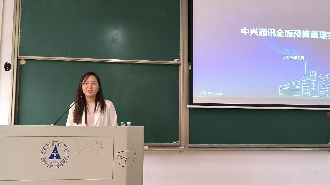 2025年5月9日上午,中兴通讯预算管理吴雨婧总监应邀在文添楼209为《财会审前沿问题研究》课程的同学们进行授课。本次课程由专硕导师组组长季华副教授主持,主题为“中兴通讯全面预算管理实践”。