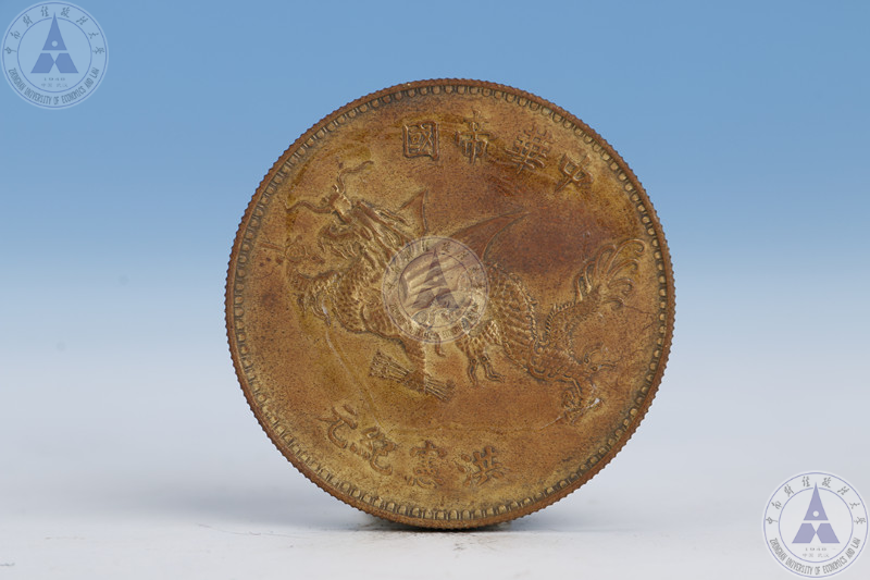 银质,圆形,直径3.9cm。正面模压袁世凯身着戎装的半身像,背面模压飞龙纹饰,上方镌刻"中华帝国",下方镌刻"洪宪纪元"。 袁世凯曾于1915年12月接受帝王称号,改国号"中华帝国",改1916年为"洪宪元年",并拟于1916年元旦加冕登基,此银币应为其加冕登基的纪念币。它是见证袁世凯复辟帝制等历史事件的重要的实物资料。