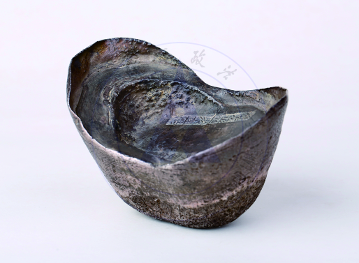 中国古代的白银货币以银锭为主要形态,使用时需称重并计算成色。清朝银锭主要有五十两与十两两种规格,五十两银锭主要用于政府税收、贮藏与民间大额贸易,十两银锭主要用于民间小额交易。此为宣统年间(1909-1911年)间山西榆次县聚兴银炉铸造的五十两银锭,具有山西银锭的典型特征,存世较少。