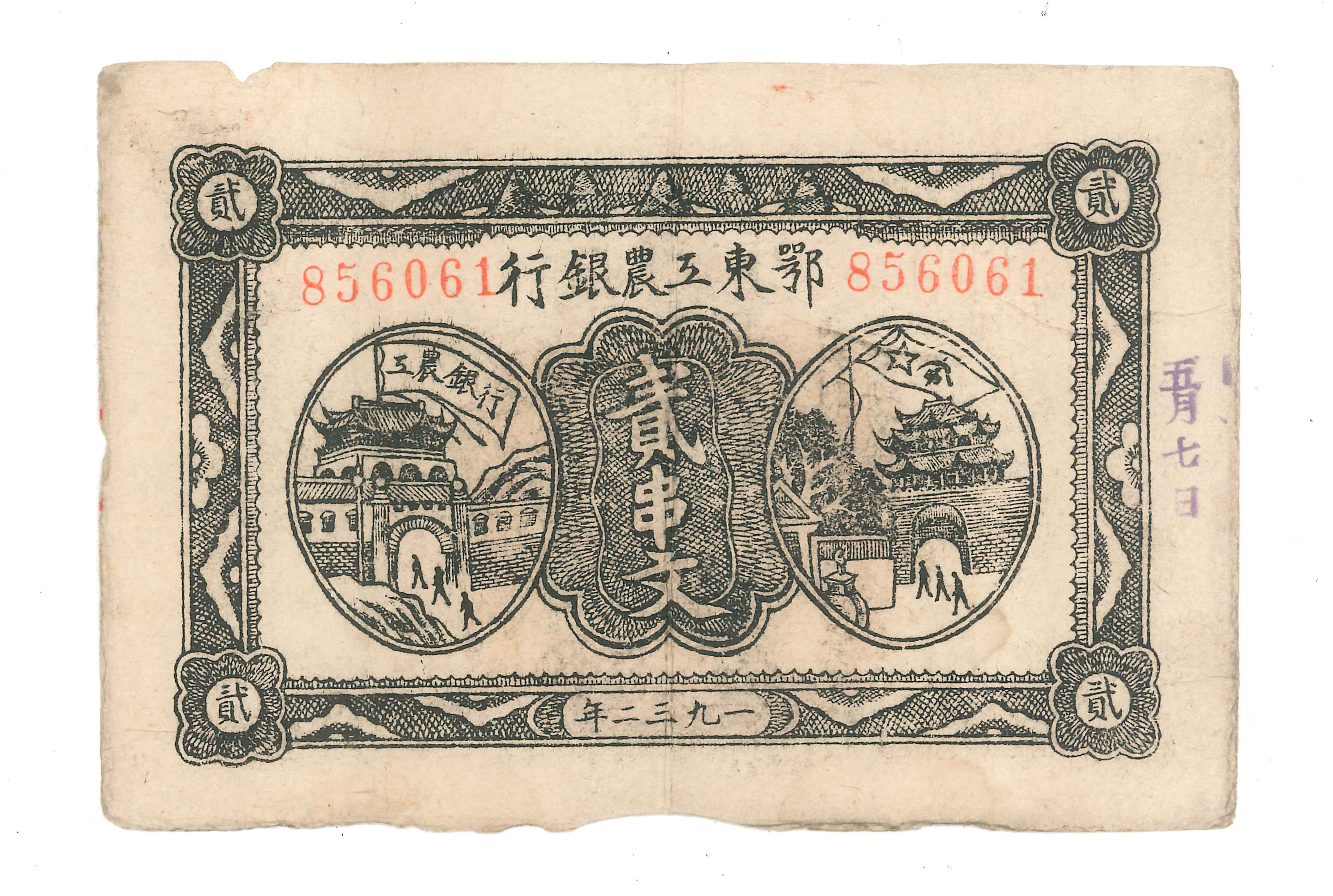1931年初,“鄂东农民银行”改称为“鄂东南工农兵银行”,行址在湖北省阳新县龙港镇,随即发行“鄂东南工农兵银行铜币券”面值四种,流通于鄂东南苏区。1931年第一次反围剿胜利后,鄂东南苏区正式划归湘鄂赣中共省委领导,成为湘鄂赣革命根据地的重要组成部分。1931年2月,鄂东南苏维埃政府在湖北阳新县成立“鄂东南工农兵银行”,发行铜元票,1932年3月,该行改称为“鄂东工农银行”,5月又改称为“鄂东南工农银行”。