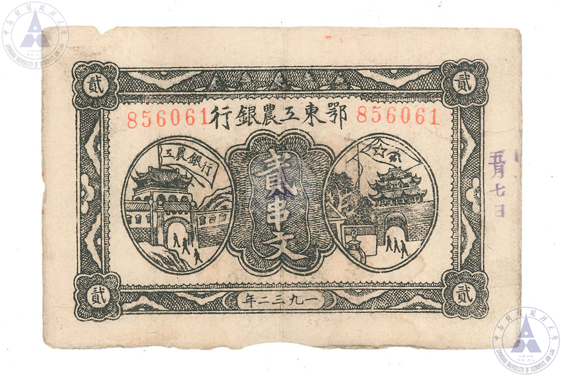 1933年 川陕省苏维埃政府工农银行叁串布币