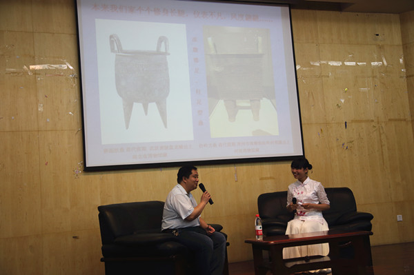 马瑞钧老师精通青铜器、汉服等各类收藏,素有“马百度”之称。同学们积极踊跃的提问丝毫没有难倒马老师,他引经据典,侃侃而谈,为同学们答疑解惑,引领同学们穿越古今,在历史文物的浩瀚汪洋中奇幻漂流。