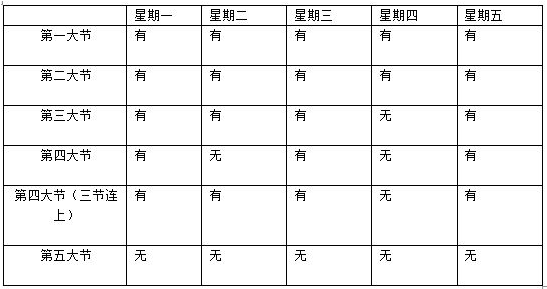 (注:“有”表示学校安排往返班车,“无”表示学校不安排往返班车)