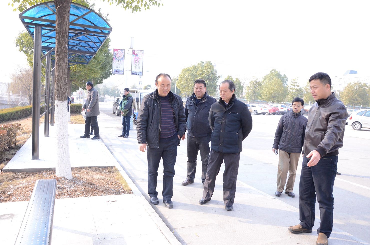 1月7日下午,张中华与副校长陈明、党委宣传部部长殷修林、后勤保障部部长李宏、副部长王建荣等相关部门负责人一行,先后查看了由后勤保障部负责实施的系列“民生工程”——南湖校区教职工候车站点、地埋式垃圾站点二期工程、滨湖八食堂、“空调进学生宿舍”工程、校内园路建设等。