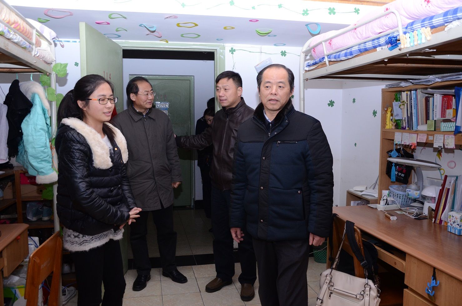 张中华一行还深入滨湖2栋学生宿舍楼察看了“学生之家”、“空调进学生宿舍”现场,与正在寝室复习的金融学院大三女生交谈,关切地询问同学们用水、用电是否方便;对宿管服务工作是否满意。听到同学满意回答,他十分欣慰,鼓励同学期末考出好成绩。