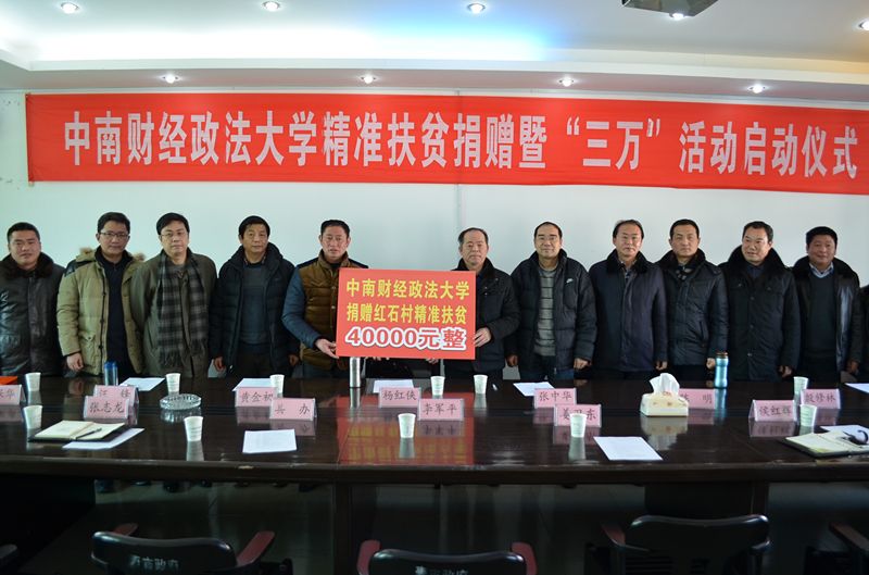 随后,双方举行了精准扶贫捐赠及第六轮“三万”活动启动仪式。会后,张中华一行到红石村慰问了贫困户代表,查看了驻村工作队办公及生活环境并代表学校向红石村捐赠价值两万元的学习文具。