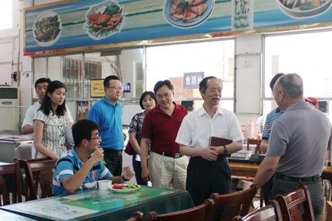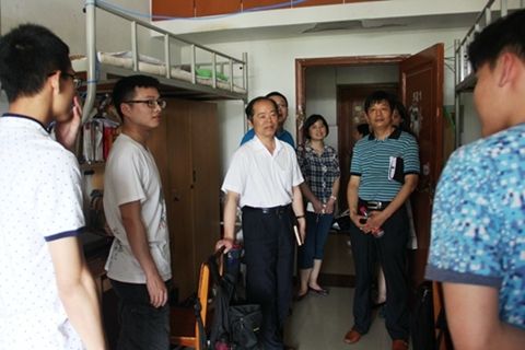 张中华一行来到学生九食堂,对九食堂各窗口进行走访,考察窗口用油安全、菜价、菜品状况,并向工作人员强调食品安全的重要性。张中华与就餐学生亲切交谈,了解学生就餐情况。最后,张中华一行步行至临湖四栋学生公寓,询问学生住宿体验,考察学生宿舍楼周边环境。