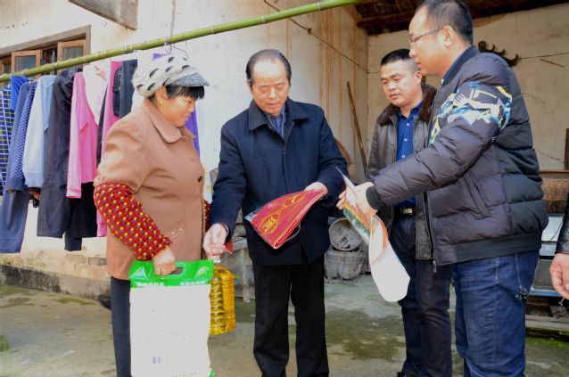 新闻网讯(通讯员 潘常刚 摄影 覃虹)农历腊月二十六,校党委书记张中华、副书记王文贵一行赴通城县麦市镇红石村调研精准扶贫工作,走访慰问红石村贫困户代表,看望我校省驻村工作队,并代表学校向我校精准扶贫驻点村红石村捐赠十万元。党委组织部部长杨红侠、党委宣传部部长殷修林、教务部部长李志生、马克思主义学院院长龚先庆、校团委副书记梁娜等陪同调研。