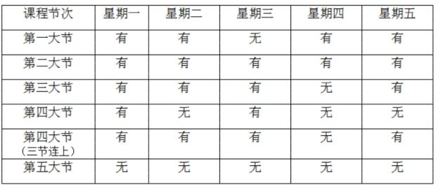 13:05——13:15——13:35(去上第三大节课)(星期四无)