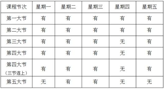(注:“有”表示学校安排往返班车,“无”表示学校不安排往返班车,因去上课的教师较少和班车座位有限,以上班车仅限到首义校区上课教师的乘坐。)