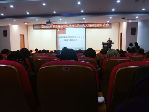 新闻网讯(通讯员毛承东刘祚衡)12月19日晚,校党委书记栾永玉教授莅临中韩新媒体学院文济楼201讲堂,为中韩新媒体学院师生宣讲十九大精神。中韩新媒体学院中方院长兼直属党总支书记祝振炎,直属党总支副书记刘晓燕,学院各党支部书记、辅导员及中韩新媒体学院第六期分党校学员、入党积极分子、发展对象、预备党员、学院各学团组织成员参加了此次宣讲会。宣讲会由祝振炎主持。