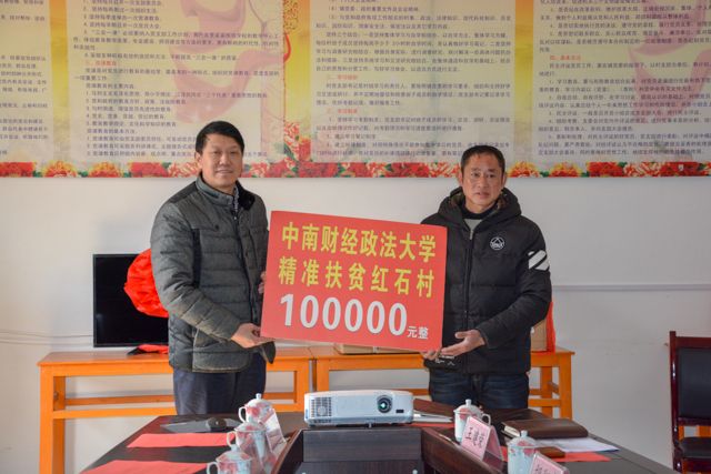 新闻网讯(通讯员 姚春平)2月2日,校党委书记栾永玉、校党委副书记王文贵一行7人,奔赴通城县麦市镇红石村开展精准扶贫调研工作,就2017年红石村顺利脱贫出列举行总结座谈,走访慰问红石村贫困户代表,看望我校省驻村工作队,并代表学校向我校精准扶贫驻点村红石村捐赠扶贫资金100000元及价值21000元的电器。校工会主席罗明辉、校资产管理部部长靖才春、校党委组织部副部长傅小勇、经济学院党委副书记詹万明陪同调研。