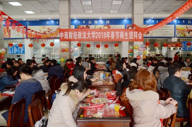 新闻网讯(通讯员 姜雨杭 李雄涛 甘罗)金鸡昨日翔,神州遍奏迎春曲;玉犬今朝跃,新岁再修创业图。2月13日中午,农历腊月二十八,学校举行2018年春节团拜会,校党委副书记王文贵、副校长刘仁山与留校的350余师生员工欢聚一堂,同吃团年饭,共迎戊戌新春。各相关部门、学院负责人参加了此次活动。