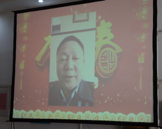 五食堂内,红彤彤的小灯笼高高挂起,师生们都围着学校发放的红色围巾,现场呈现出一片红色海洋,年味儿十足。校长杨灿明通过现场视频连线,与参加团拜会的师生分享一年来学校取得的各项成就,为师生送上新春祝福,祝大家新春快乐、身体健康、工作顺利、学业有成!