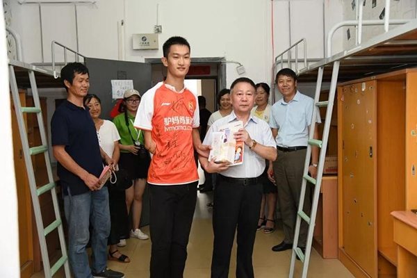 一套励志书籍,一份大学四年的商业保险,两张爱心助学卡,以及一件武汉卓尔俱乐部主教练李铁及球员的签名球衣,传递的是中南大对逐梦学子的深深关怀与鼓励。