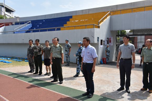 校领导一行视察了南运场、大运场等军训场地,向教官、辅导员及学生送上关心和问候。仔细询问了军训相关事宜以及大阅兵的相关事项。