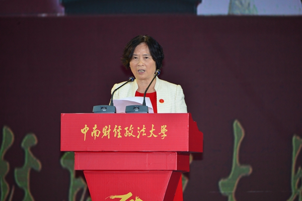 教师代表、法学院郑祝君教授深情回顾了在中南大从学生到教师,40年扎根中南大亲身经历和感受到的学校改革发展历程。她谈到,能够参与和见证中南大的成大,她感到骄傲和荣幸。衷心祝愿祝福中南大蒸蒸日上,再次扬帆远航。