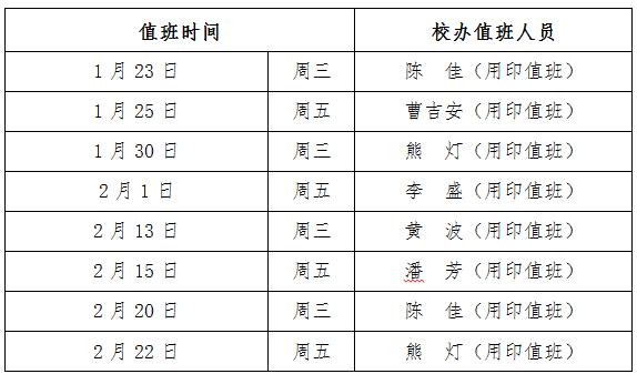 学校办公室2018-2019学年寒假用印值班表