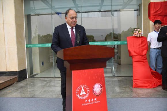 杨灿明校长在揭牌仪式致辞中说:“今年3月,中国国家主席习近平访问了意大利,签署了中意共同推进‘一带一路’建设的谅解备忘录,进一步推进了中意全面战略伙伴关系;4月,我校与罗马第一大学合作举办的硕士学位教育项目获教育部批准;今天,我们一起在中南大庄严的宣布两校合作的中意学院正式成立。所有这些瞬间,或将载入中意两国交往史册,或将成为中意两国教育交流品牌,或将建成中南大和罗马一大国际合作交流标杆,都将汇聚成中意双方千年友谊的重要元素,推动中意关系进入新时代,推动两校合作进入新征程。”杨灿明表示,学校对中意学院投入了大量的精力并寄予殷切的期望,期待中意学院能培养一批具有国际视野、通晓中意两国语言和“中西贯通”的高素质人才,服务于两国的经贸往来,服务于两国的人文交流,促进中意两国的合作发展,为中意两国建交50周年献礼。
