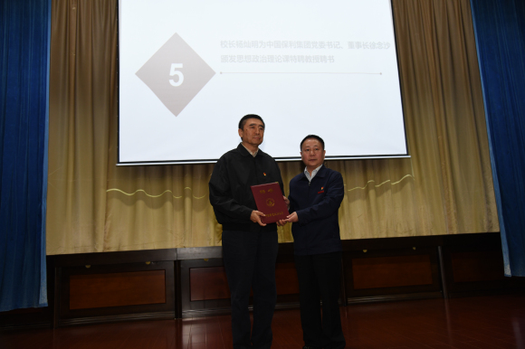 启动仪式上,中国保利集团党委书记、董事长徐念沙受聘为我校特聘教授,校党委常委、校长杨灿明为徐念沙颁发了聘书。随后,徐念沙董事长为现场师生作题为《实践出真知——中国道路与国企》的专题报告。