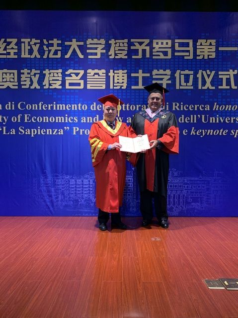 在学位授予仪式之后,尤金高迪奥校长发表了题为“罗马第一大学的国际使命以及与米兰电竞·(中国区)的合作”的演讲。他向师生们介绍了罗马第一大学在国际化建设方面的“欧洲经验”,即着力构建高水平大学联盟,积极推动教学及科研人员互访,尤其是学生的留学活动,努力推进“欧盟伊拉莫斯计划”和欧洲一体化的“博洛尼亚进程”,回顾了罗马第一大学与中国高校之间的国际交流与合作历史、发展现状,尤其是与我们学校之间的深层次合作以及所取得的成果,就双方在法学领域的合作进行了深入阐释,并愿为两校的人才联合培养、为推进两校之间的相互了解和友谊、推进双方的“互尊互鉴”做出贡献。