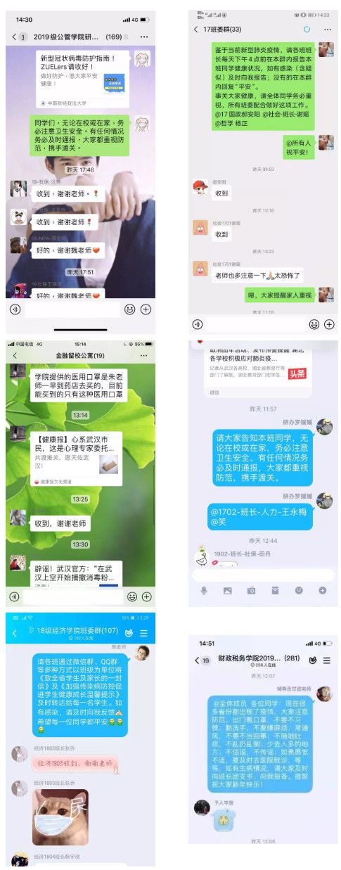 各个学院也第一时间关注学生健康状况,积极推行学生健康状况日报制度,针对大部分学生寒假放假在家的实际情况,教师班主任、辅导员等通过线上、电话等方式向学生宣传新冠肺炎防护知识,同时及时掌握学生健康状况,为做到早预防、早发现、早治疗奠定基础。