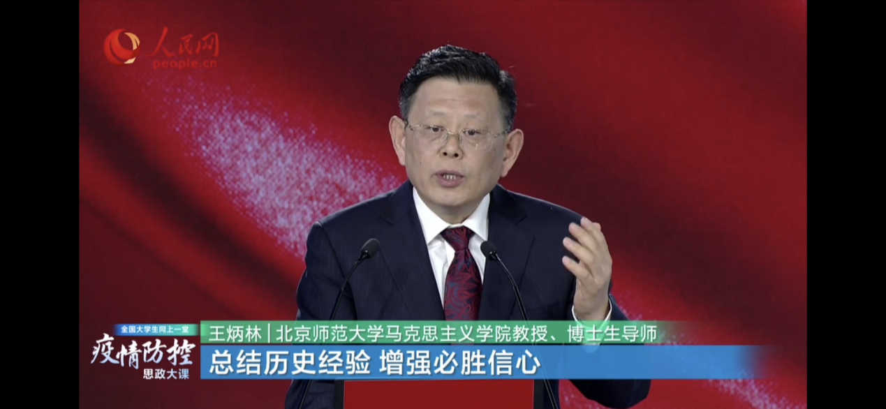 王炳林教授以“总结历史经验,增强必胜信心”为主题,通过讲述中华民族历史上与天花等瘟疫作斗争的历史,总结了古人与瘟疫斗争的经验与不足。新中国成立后,在中国共产党领导下,我国的卫生防疫事业开辟了新道路,取得了“1958年消灭血吸虫病”和“2003年战胜非典”两次较大规模的抗疫胜利。从磨难中奋起得到的启示是,一是要辩证地看待问题,长远看待此次疫情对我国的影响;二是要增强忧患意识,强化底线思维;三是尊重自然,尊重规律;四是坚持党的全面领导,充分依靠群众。在以习近平同志为核心的党中央坚强领导下,依靠改革开放以来奠定的物质保障和不断提升的医疗卫生水平,英雄的中国人民一定能够尽快取得抗疫斗争的最后胜利!