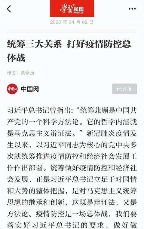 新闻网讯(通讯员 崔桢桢)4月2日,“中国网”和“学习强国”平台刊发我校党委书记栾永玉论疫情防控专题文章《统筹三大关系 打好疫情防控总体战》。现将全文转载如下: